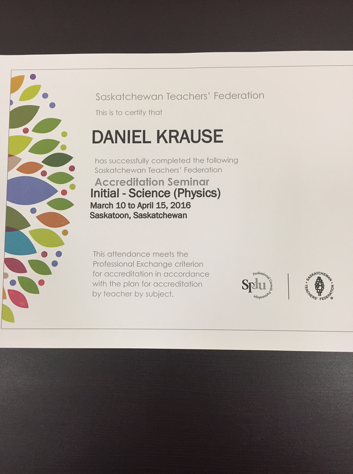 This page includes the subjects where Daniel Krause is listed as an accredited teacher in the province of Saskatchewan.